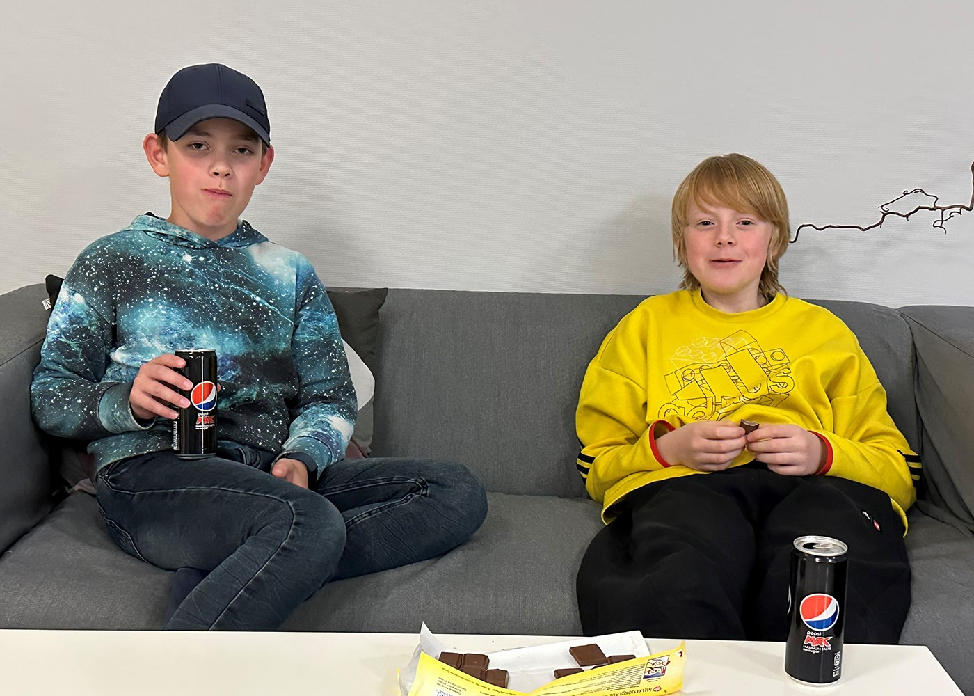 Peder og Lukas tar en velfortjent pause i programmeringen.