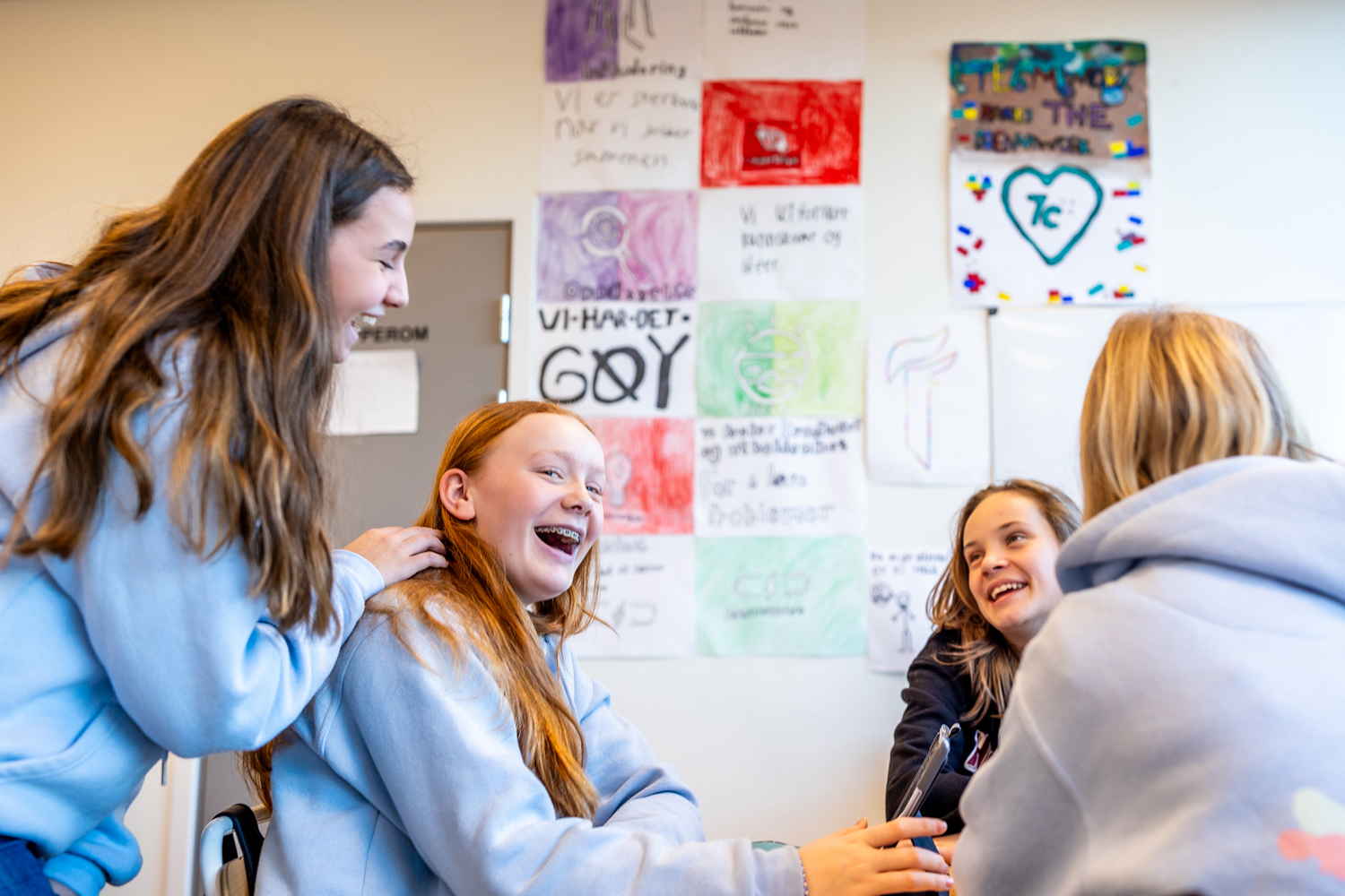 – Akkurat nå øver vi oss på å kunne svare på spørsmål på engelsk. Alle voksne som er innom klassen er oppfordret til å stille et spørsmål om kjerneverdiene som henger i klasserommet.